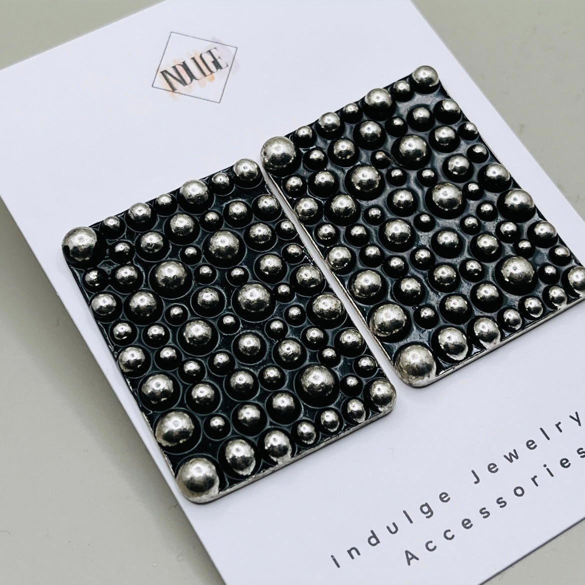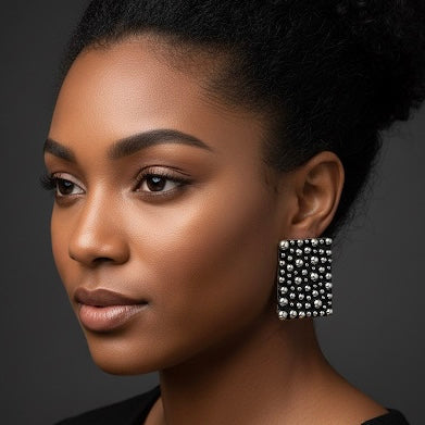 • Design: Rectangular statement earrings with textured detailing