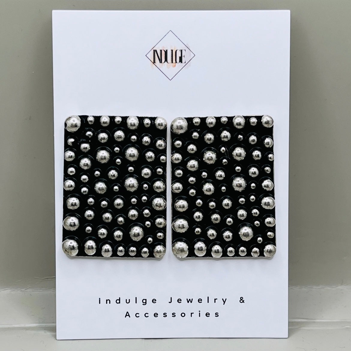 • Colors: Black base with silver-tone studs