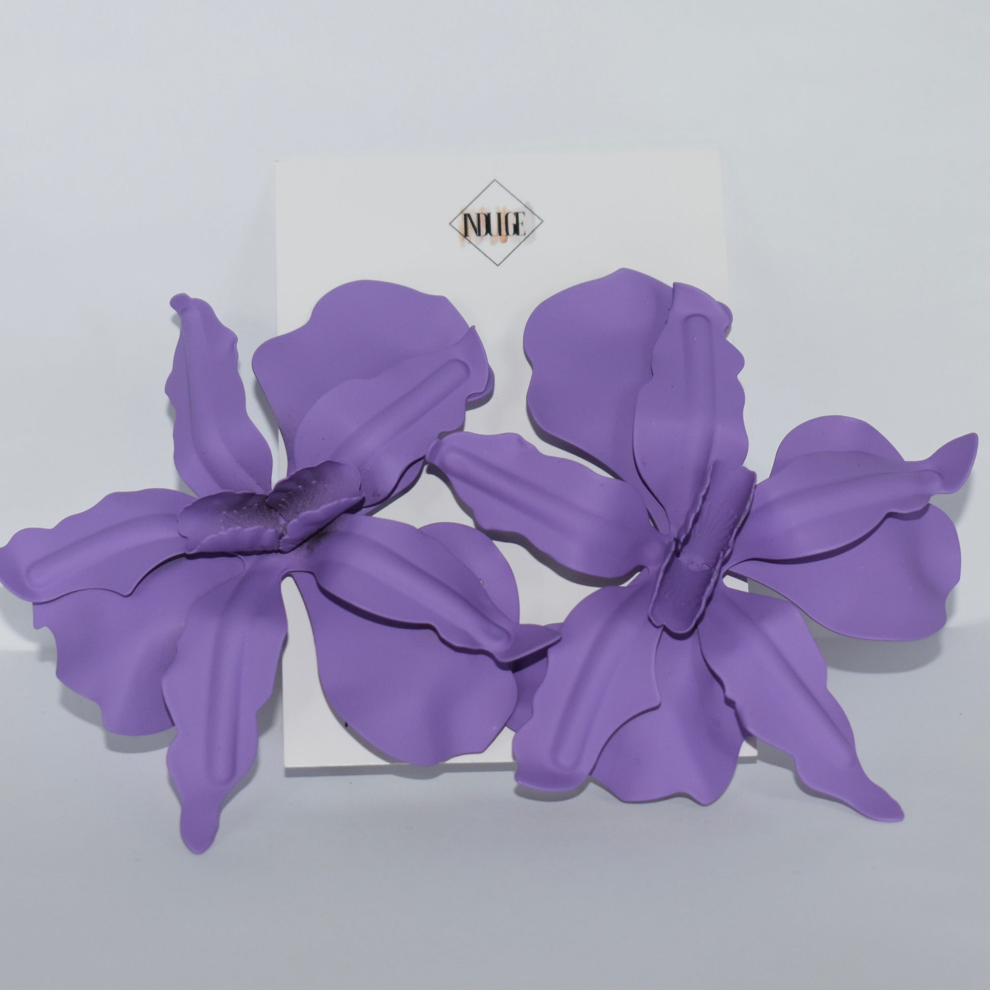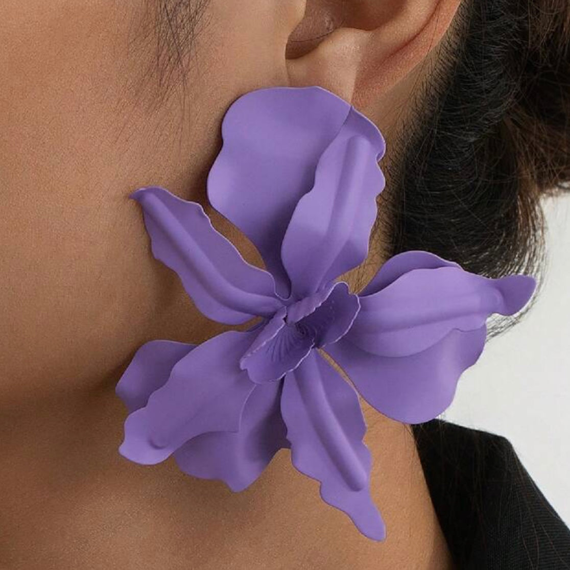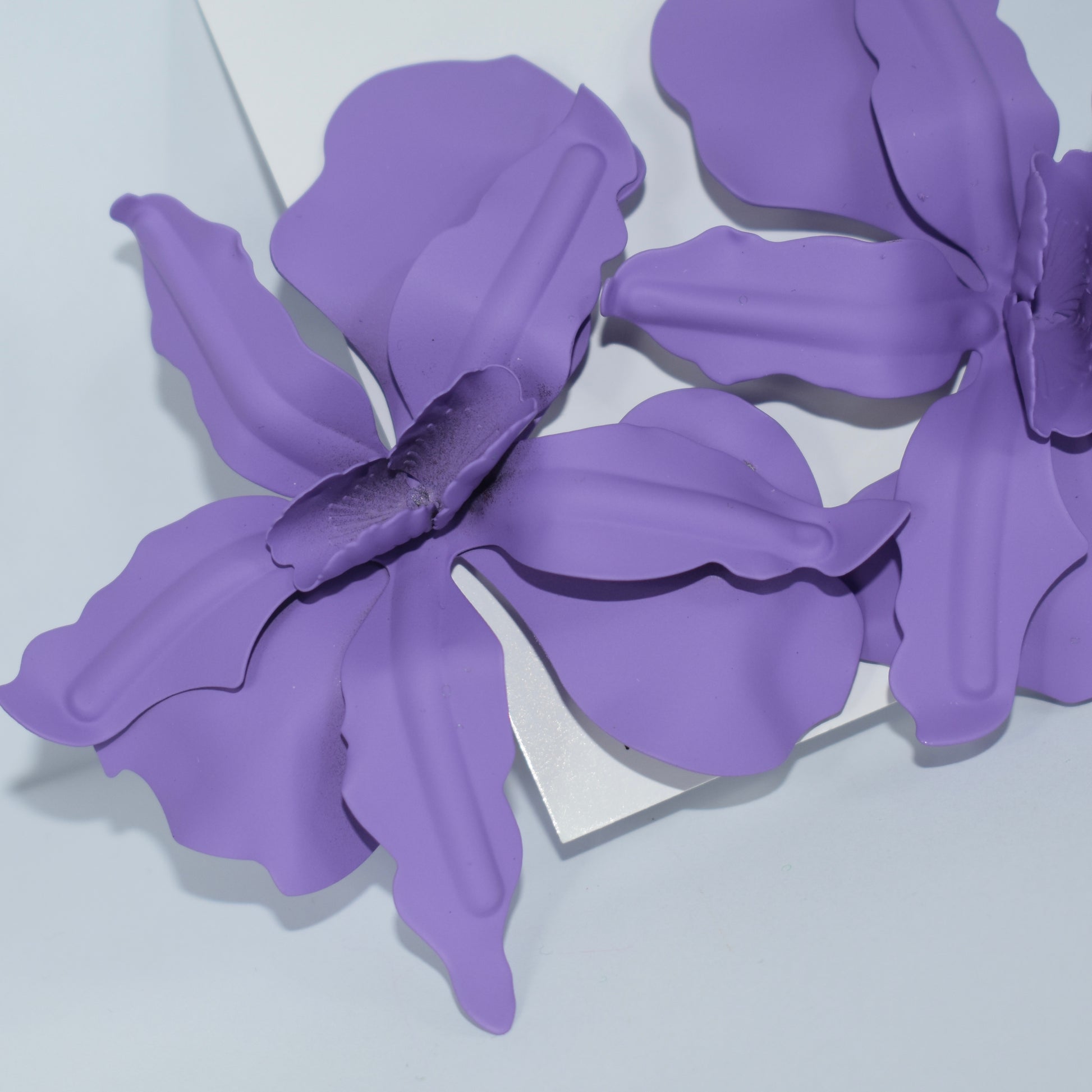 Make a bold statement with these 3D oversized floral asymmetric stud earrings. Featuring a vibrant violet hue and eye-catching design, these trendy earrings are perfect for adding a pop of color and personality to any outfit.