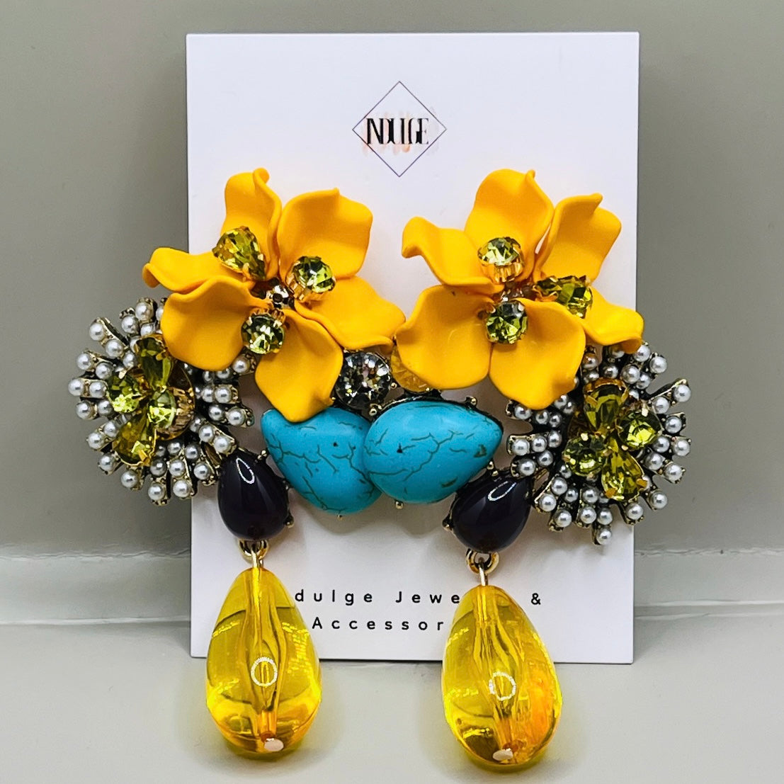 - Design: Beaded flowers with water drop accents