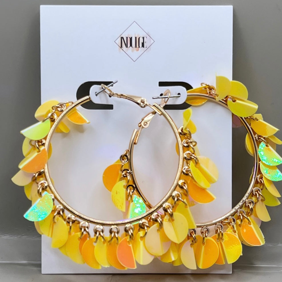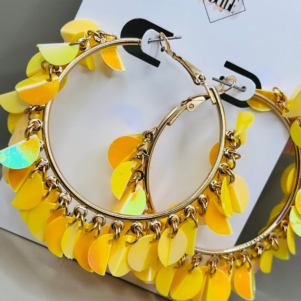Introducing a dazzling sequin fringe metallic hoop earrings design, this pair adds a touch of creativity to your accessorizing, setting the perfect tone for your individual style.Lead Complaint.