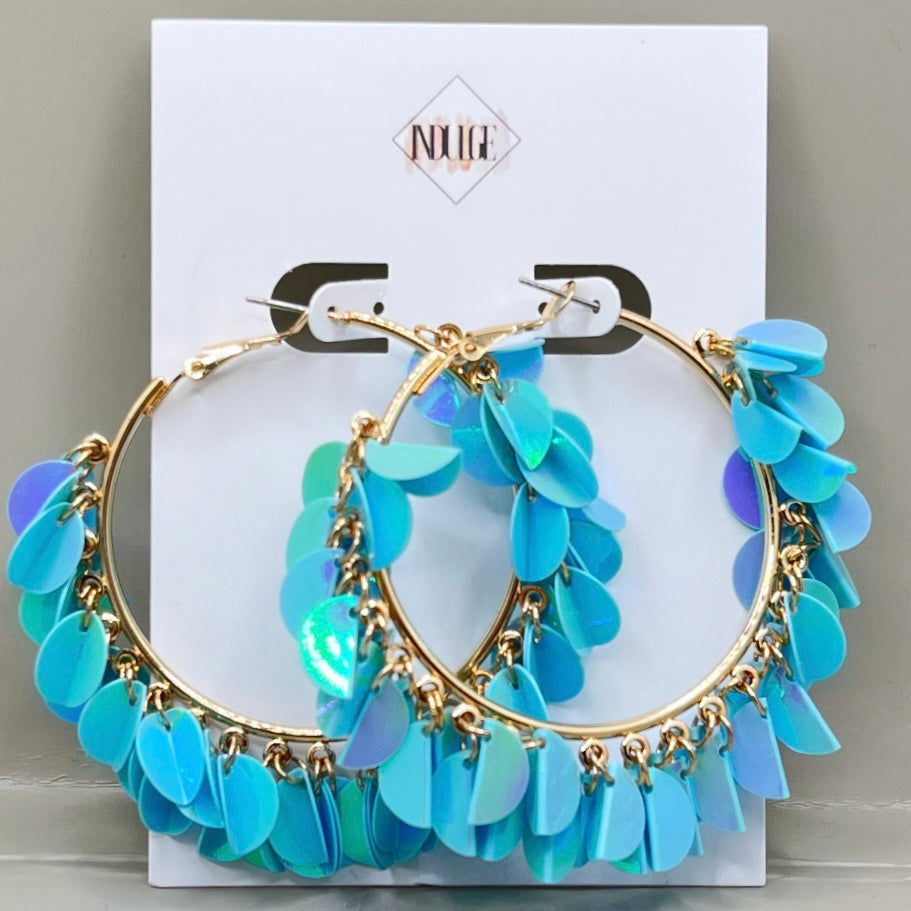 Introducing a dazzling sequin fringe metallic hoop earrings design, this pair adds a touch of creativity to your accessorizing, setting the perfect tone for your individual style.Lead Complaint.