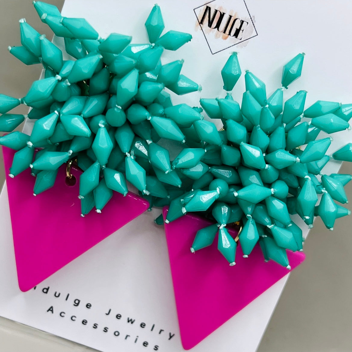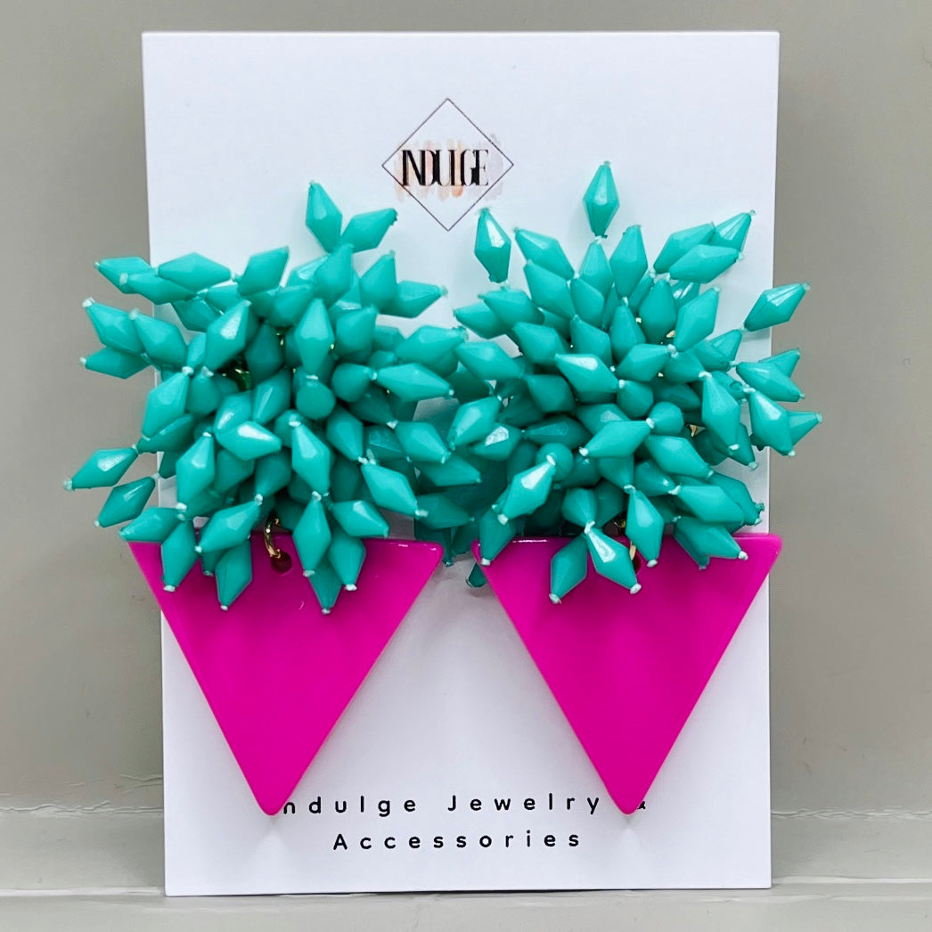 - Clustered bead detail on acrylic triangle base