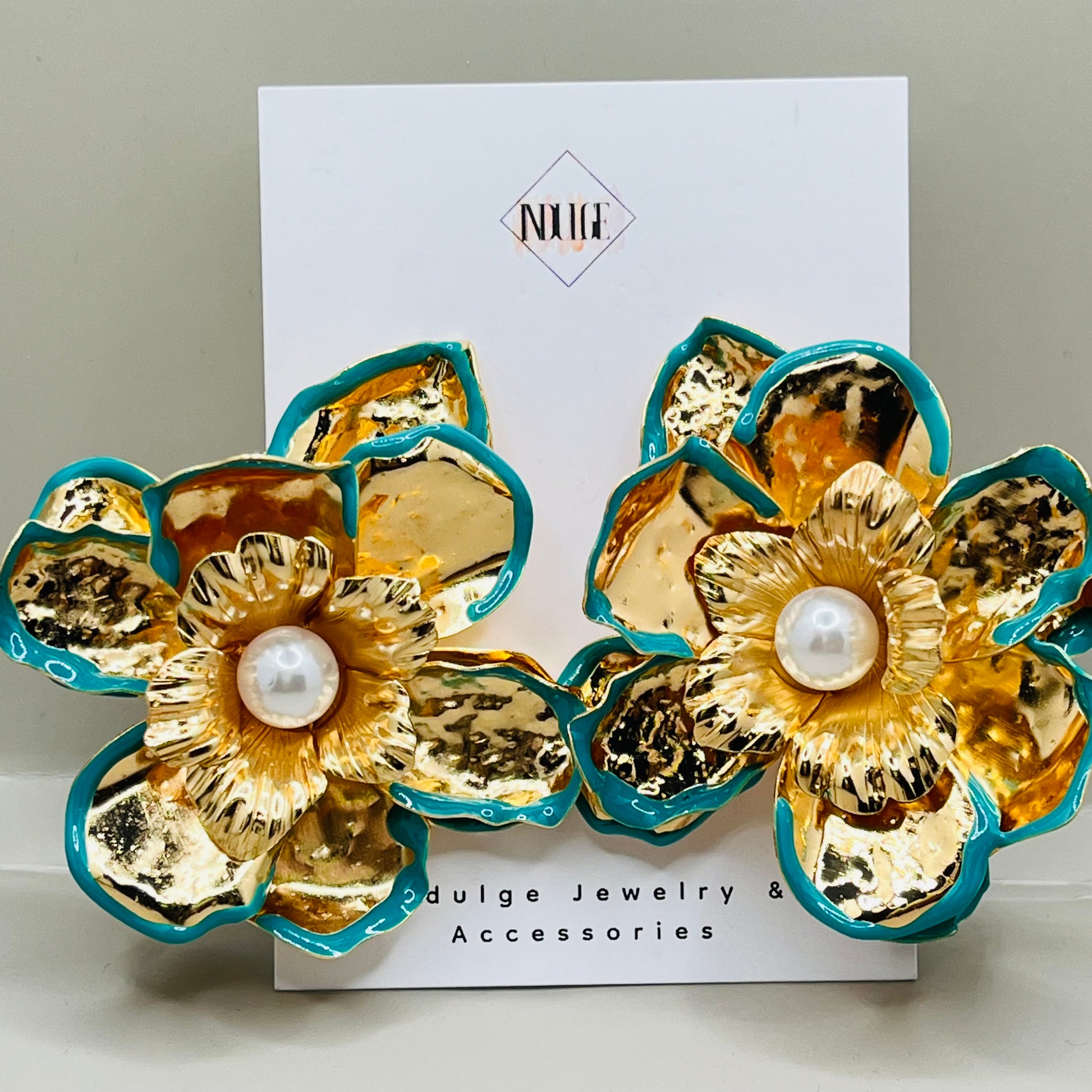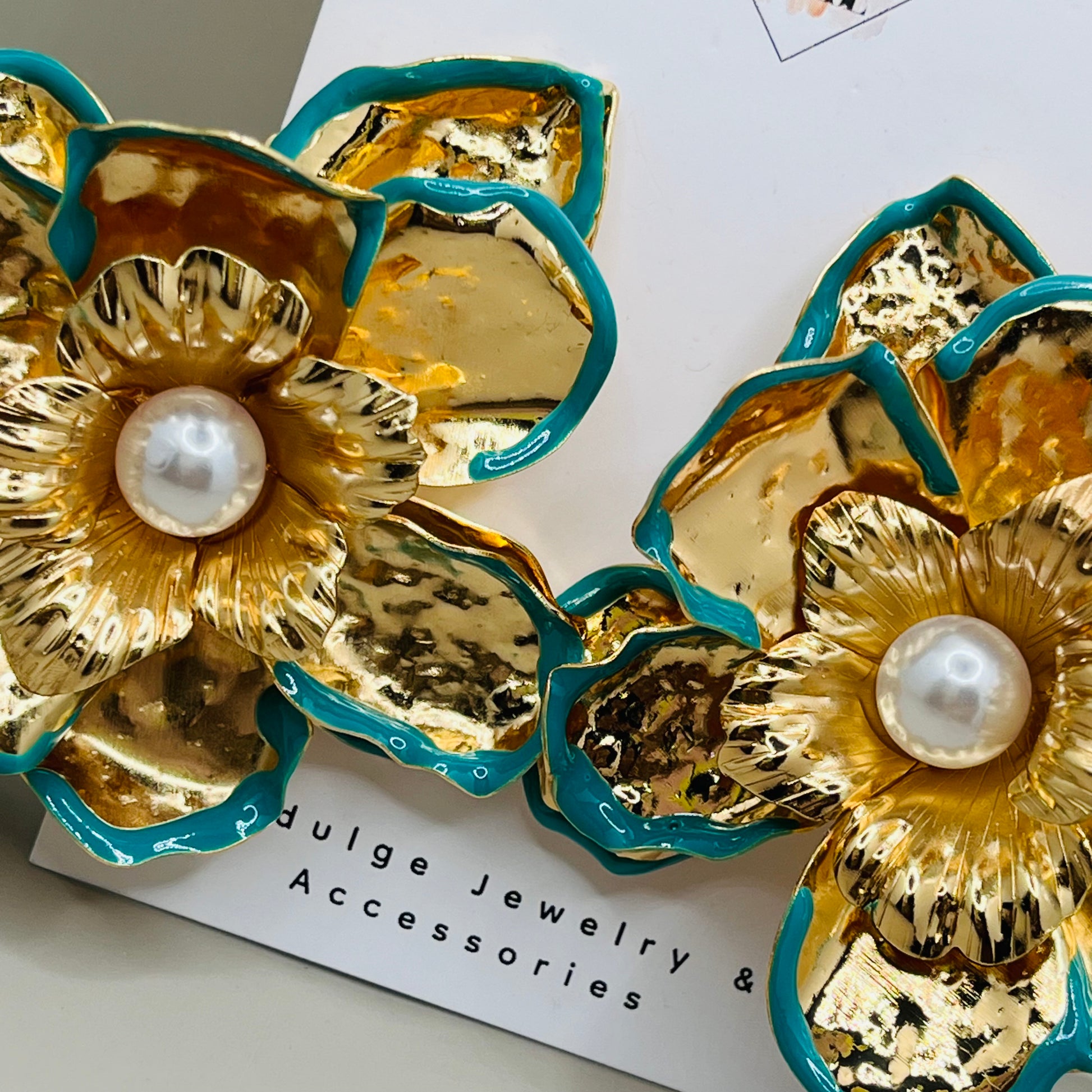 Add a bold, feminine touch to your look with these statement floral earrings. Featuring intricately textured metal petals in a vibrant red and gold finish, these earrings are perfect for turning heads.